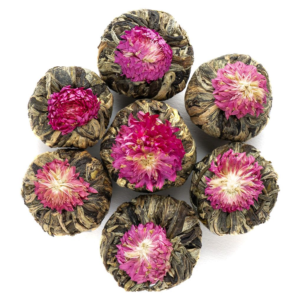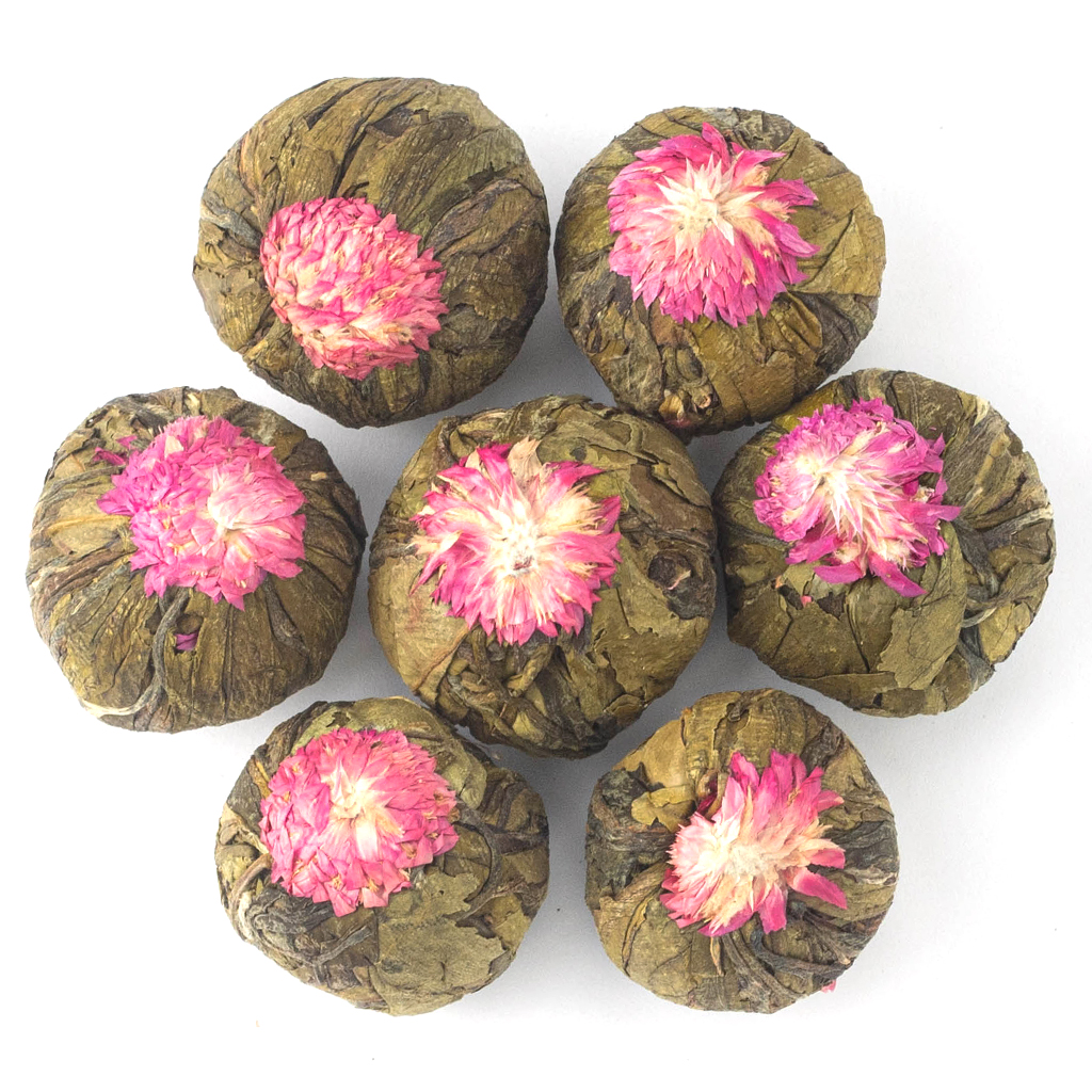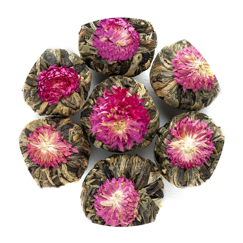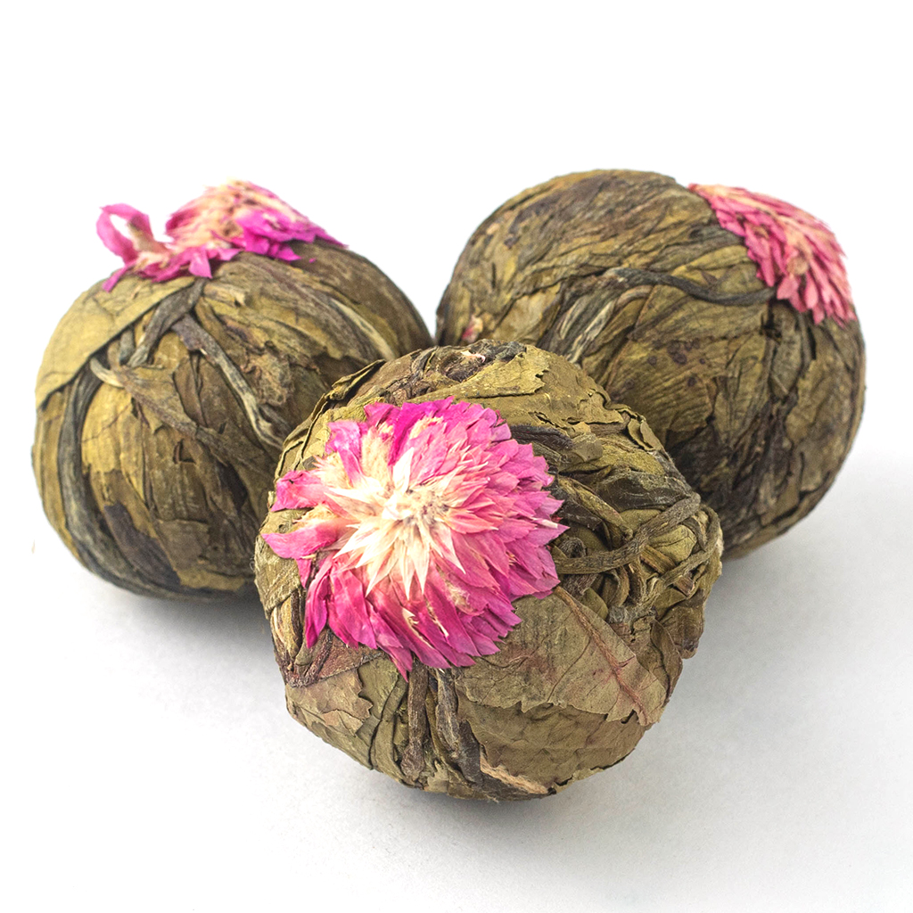 Великолепная композиция из чайных листочков, обернутых вокруг цветка розового клевера выполнена в форме небольшого шарика и насыщена экзотическим ароматом спелого сочного манго.
