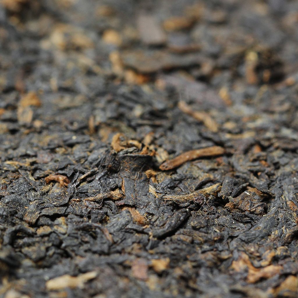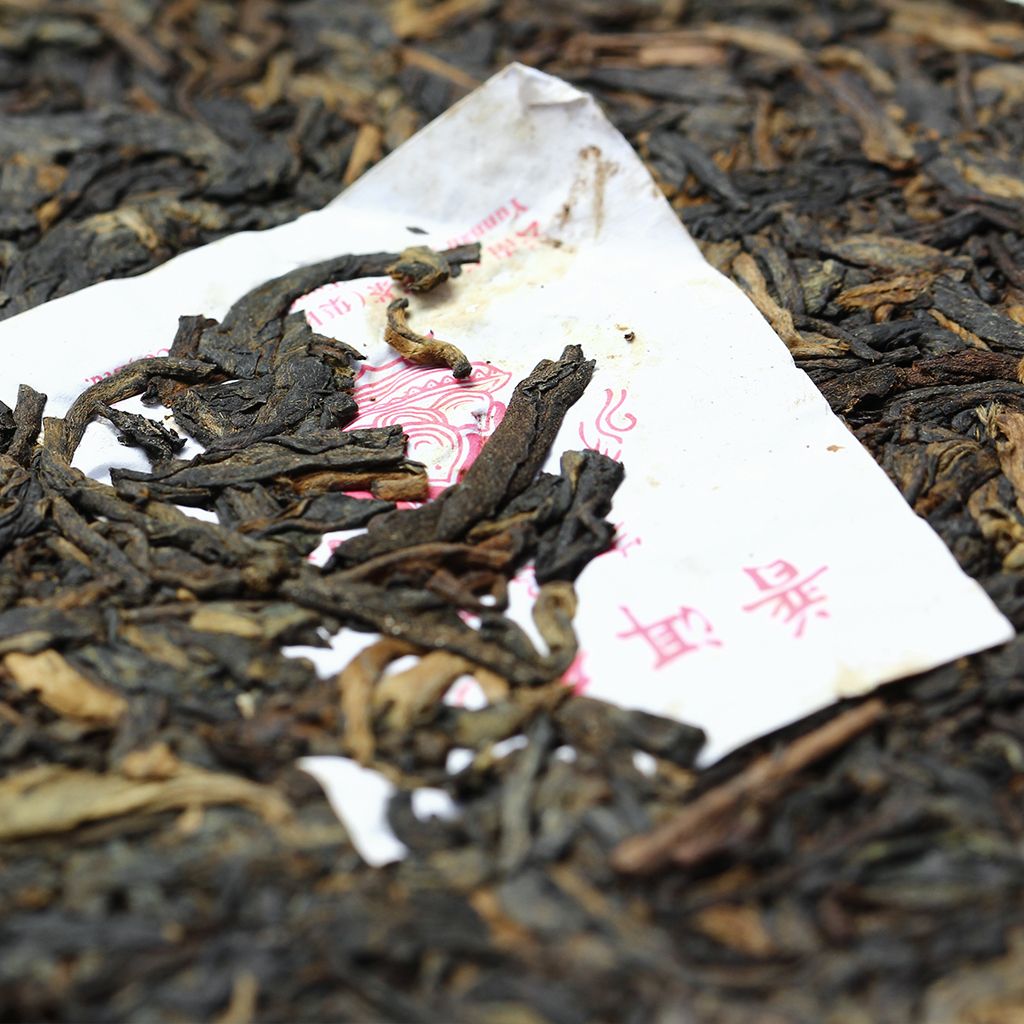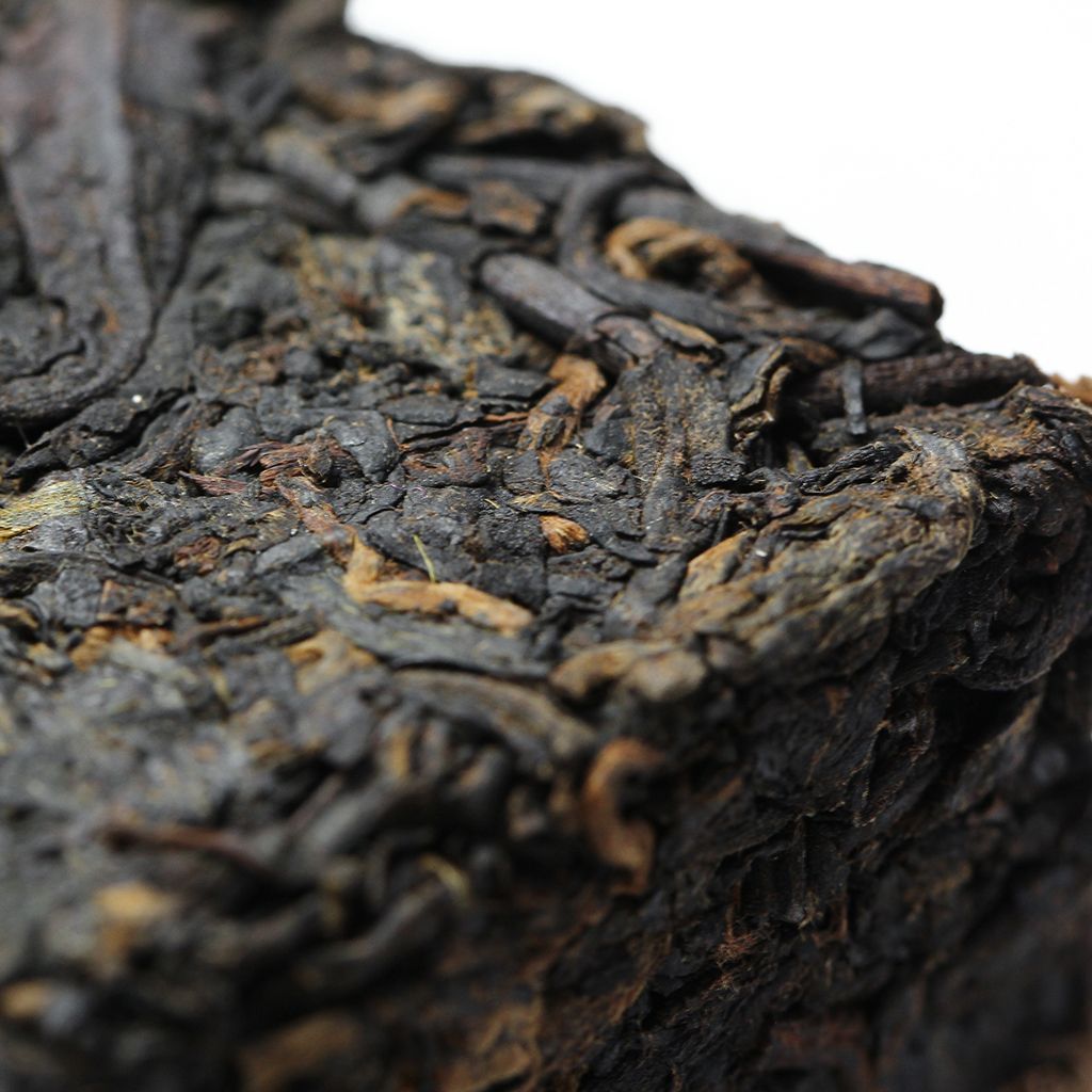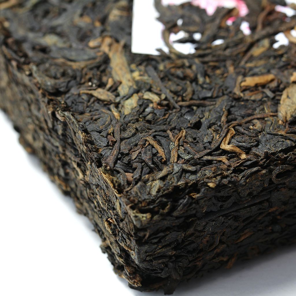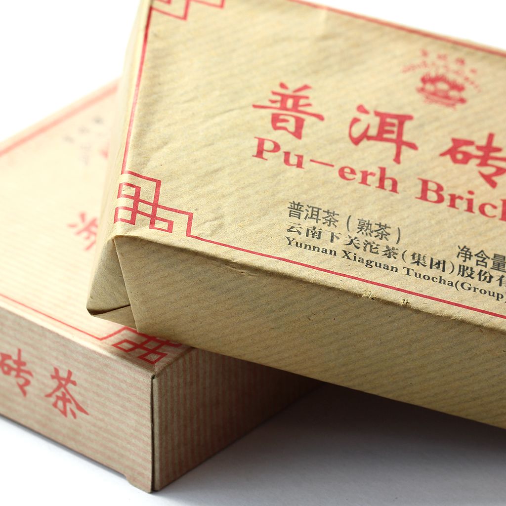 Плитка темного пуэра от знаменитой фабрики Xiaguan изготовлена из крупного чайного листа с большим количеством типсов.