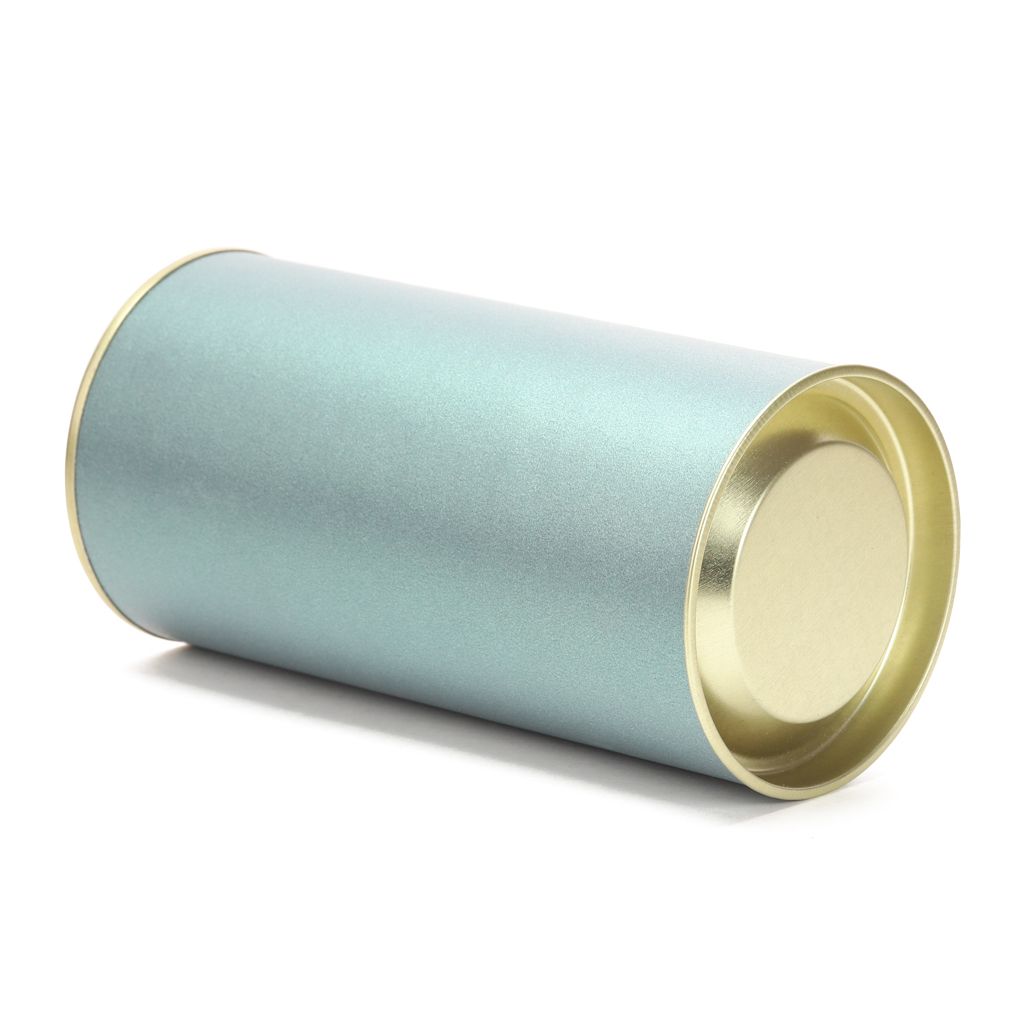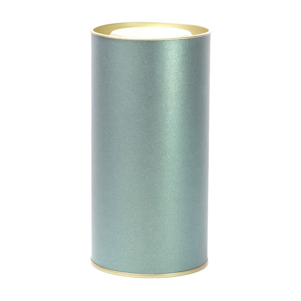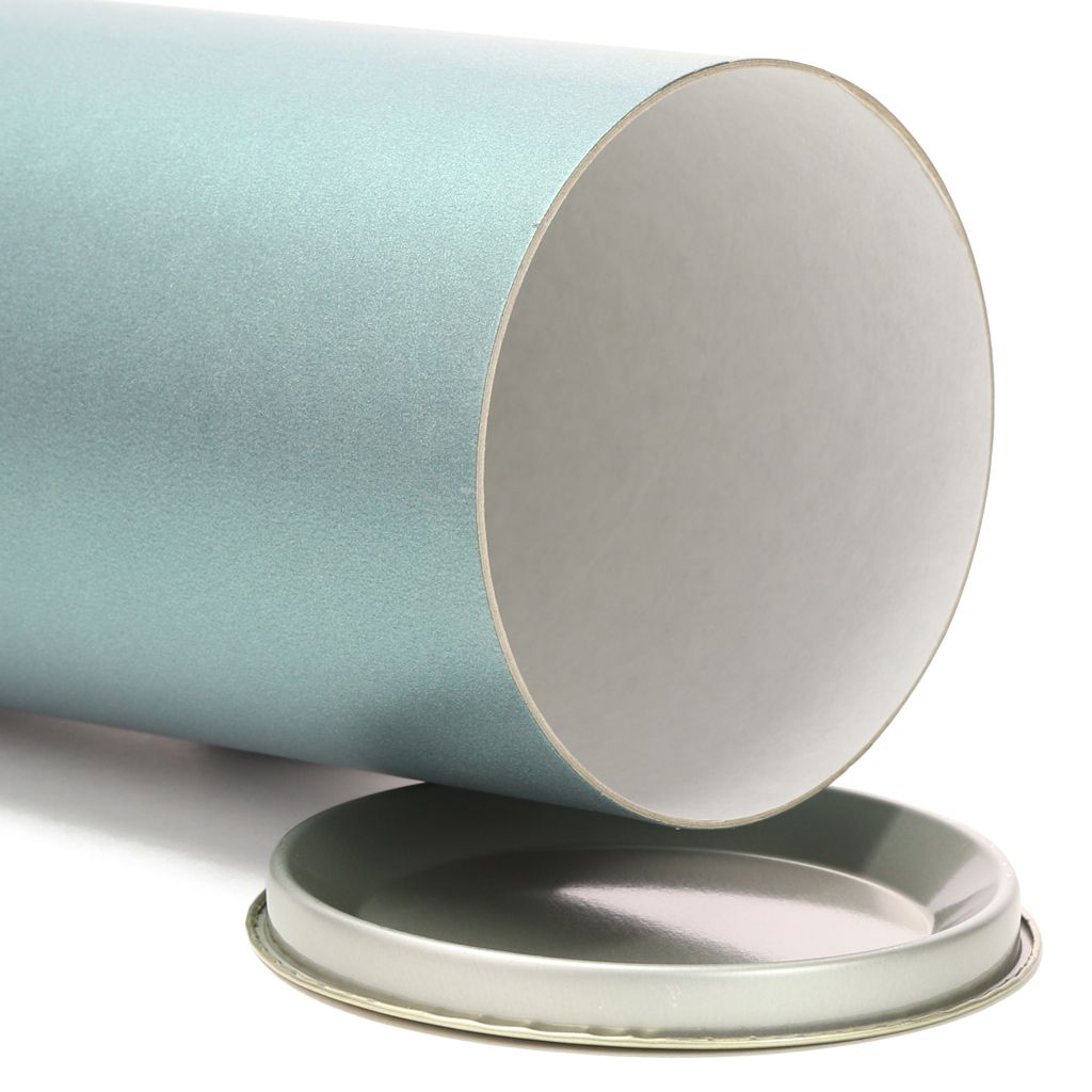 Банка картонная (тубус) для хранения чая с металлическим дном и крышкой. Перламутровая бирюза