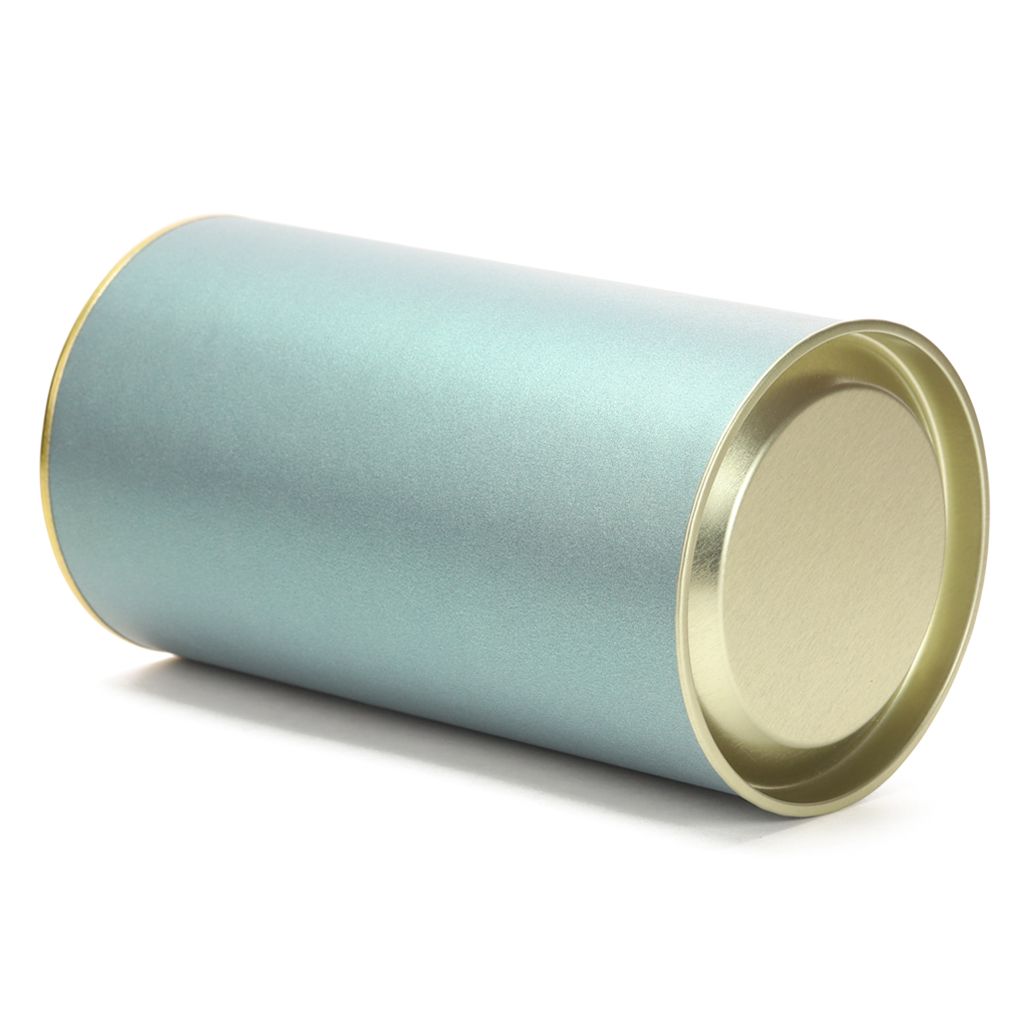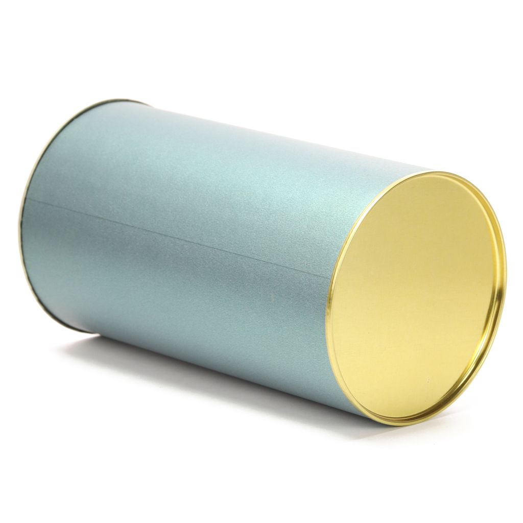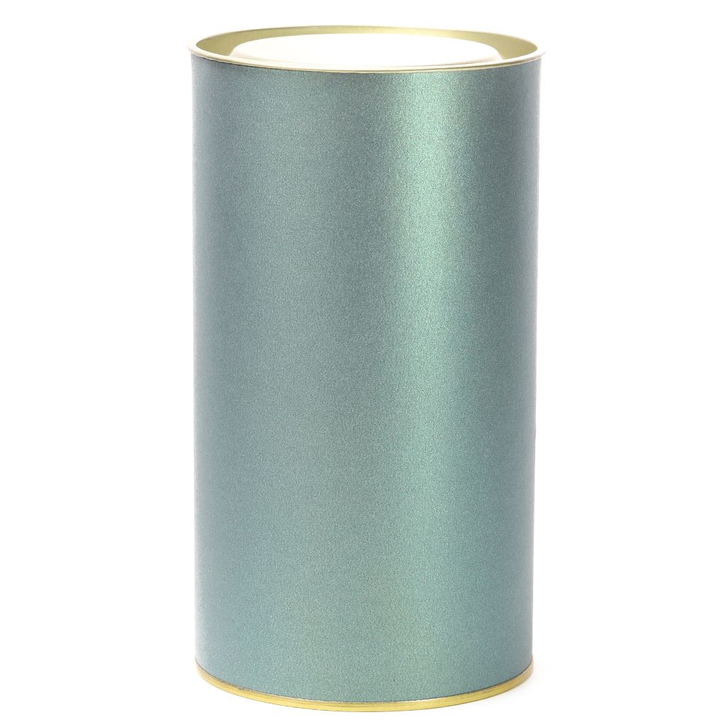 Банка картонная (тубус) для хранения чая с металлическим дном и крышкой. Перламутровая бирюза