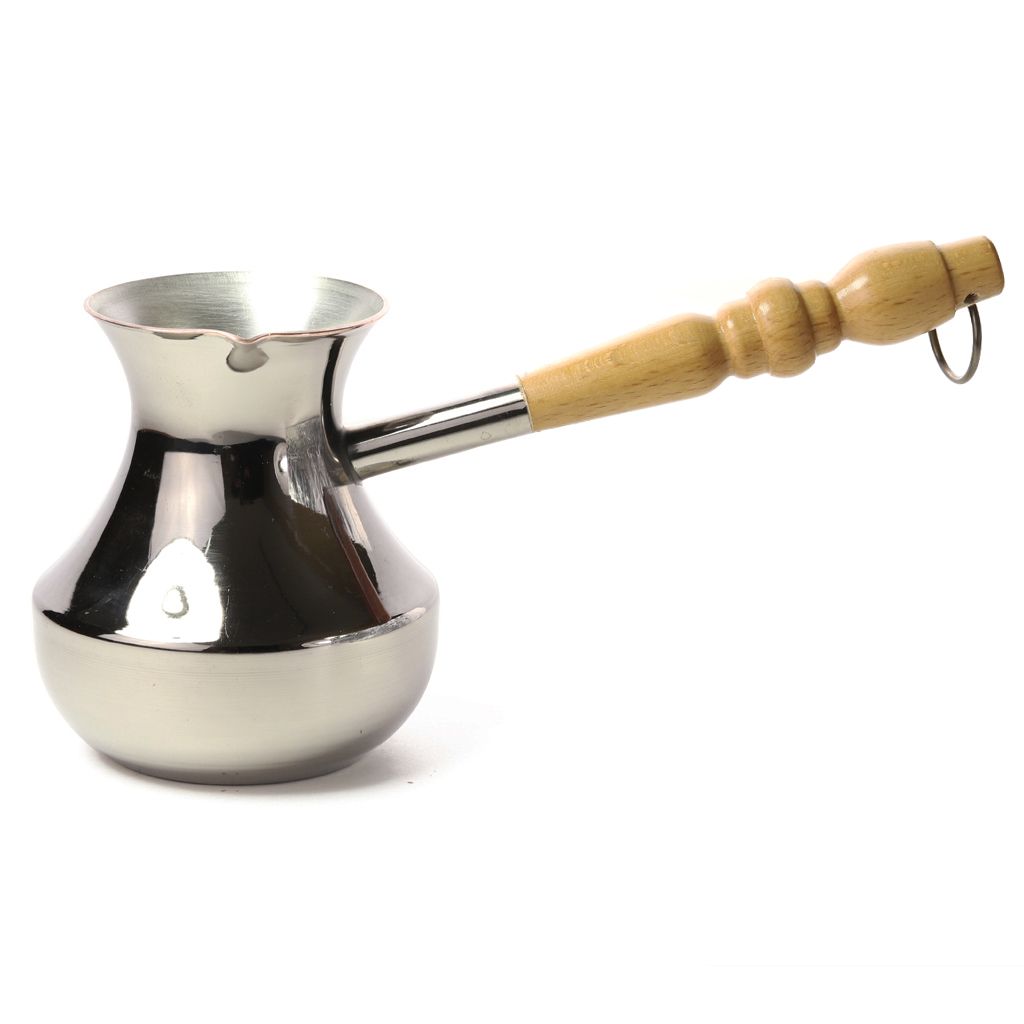 Медная турка изогнутой формы, с длинной деревянной светлой ручкой, объемом 300 мл
