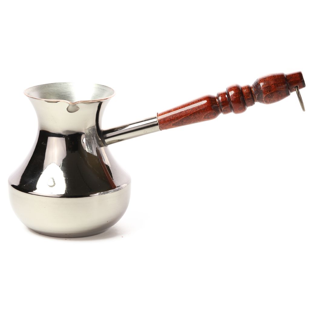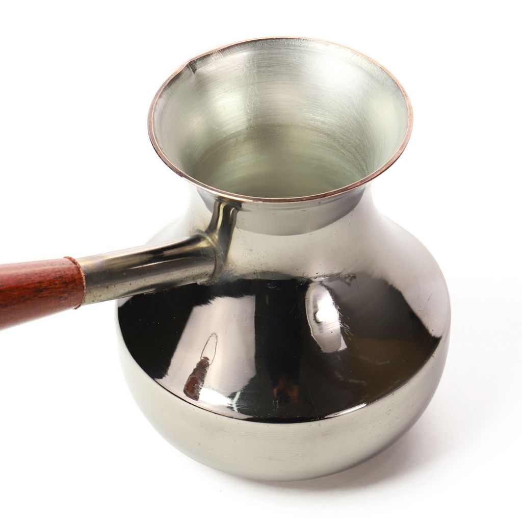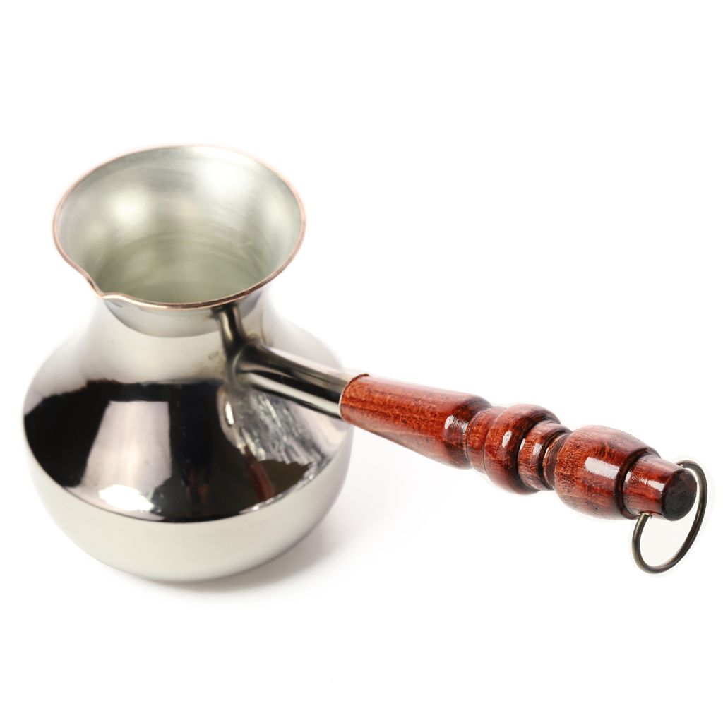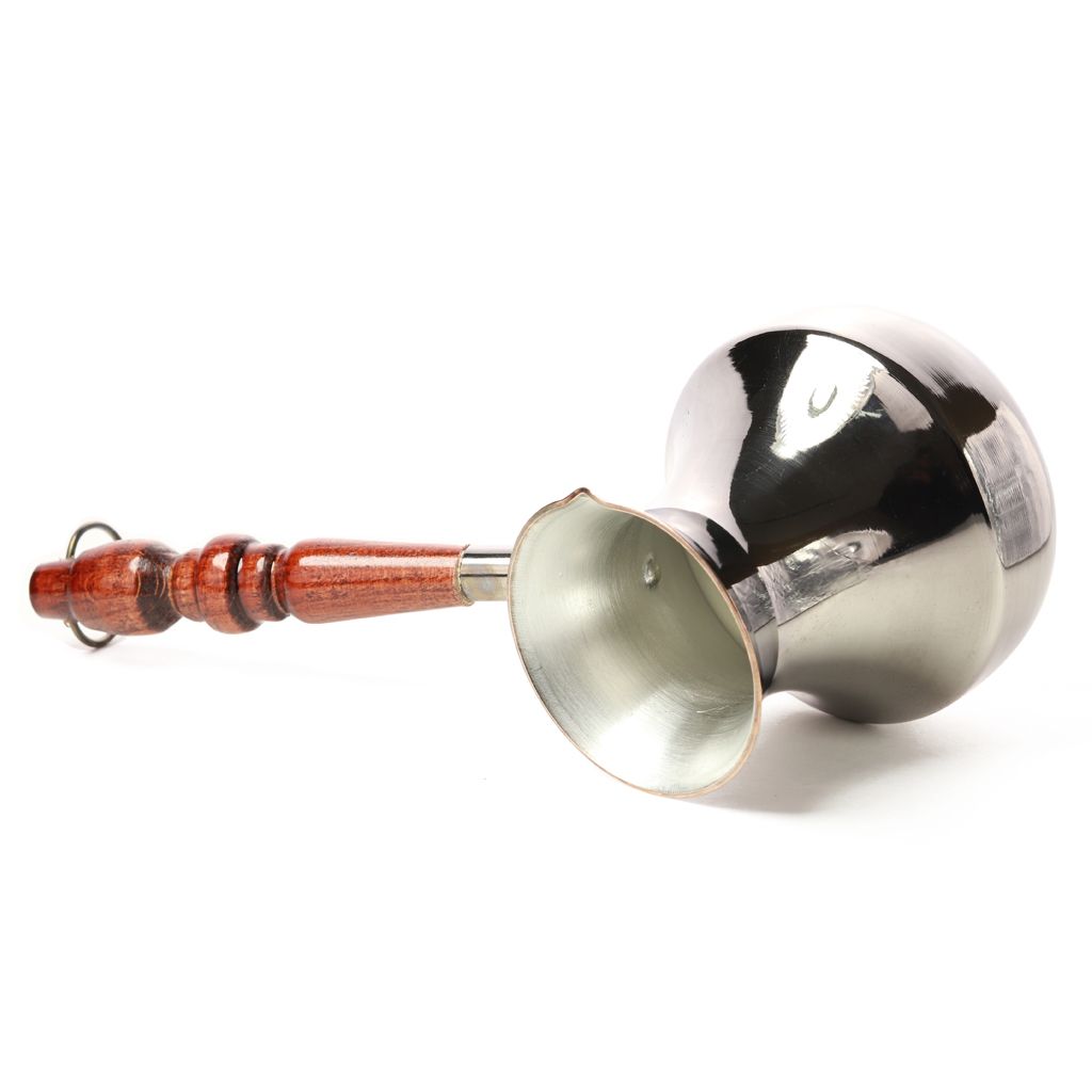 Медная турка изогнутой формы, с длинной деревянной темной ручкой, объемом 300 мл