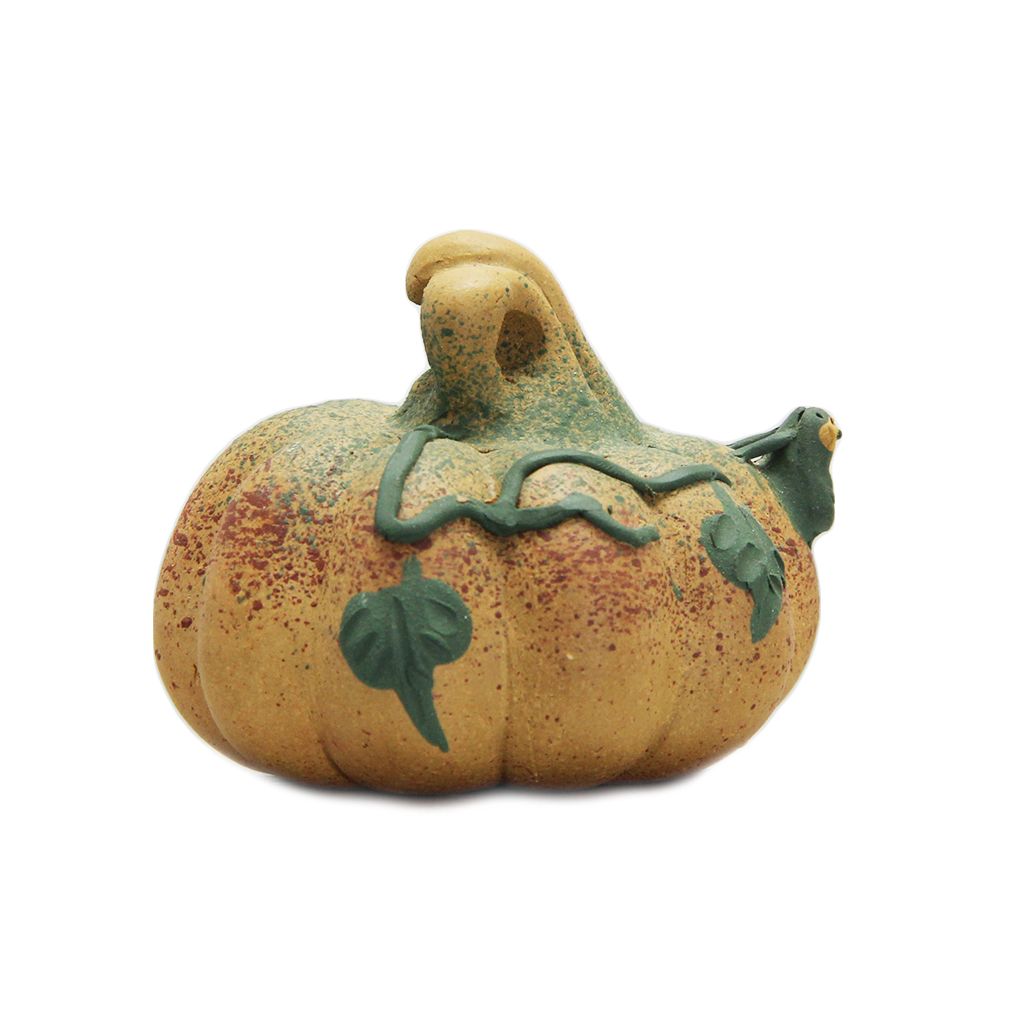 Глиняная игрушка для чайной церемонии, в виде тыковки округлой приплюснутой формы, с лягушкой