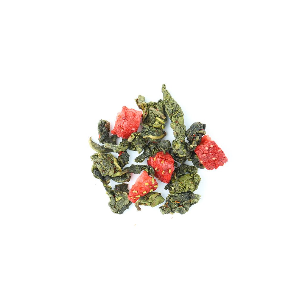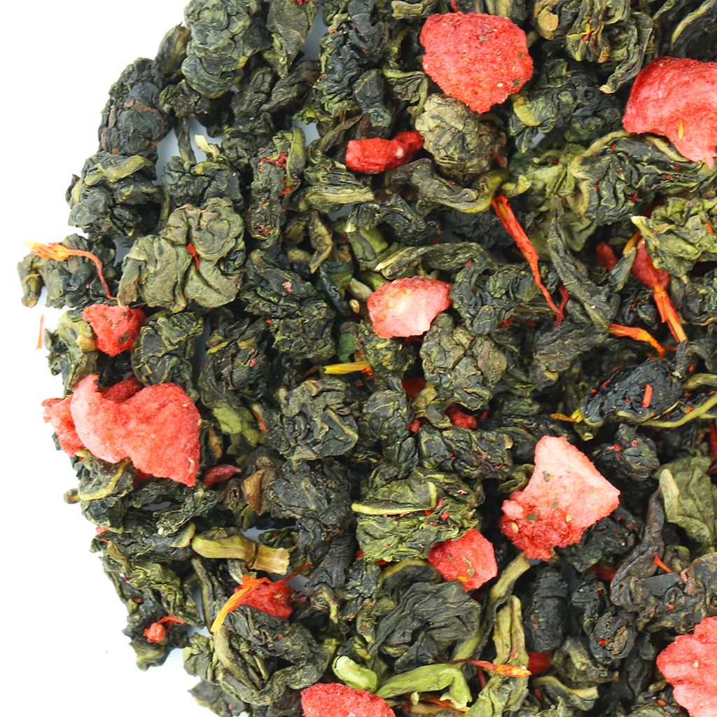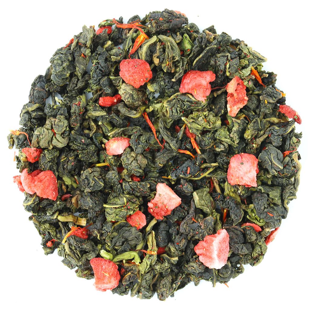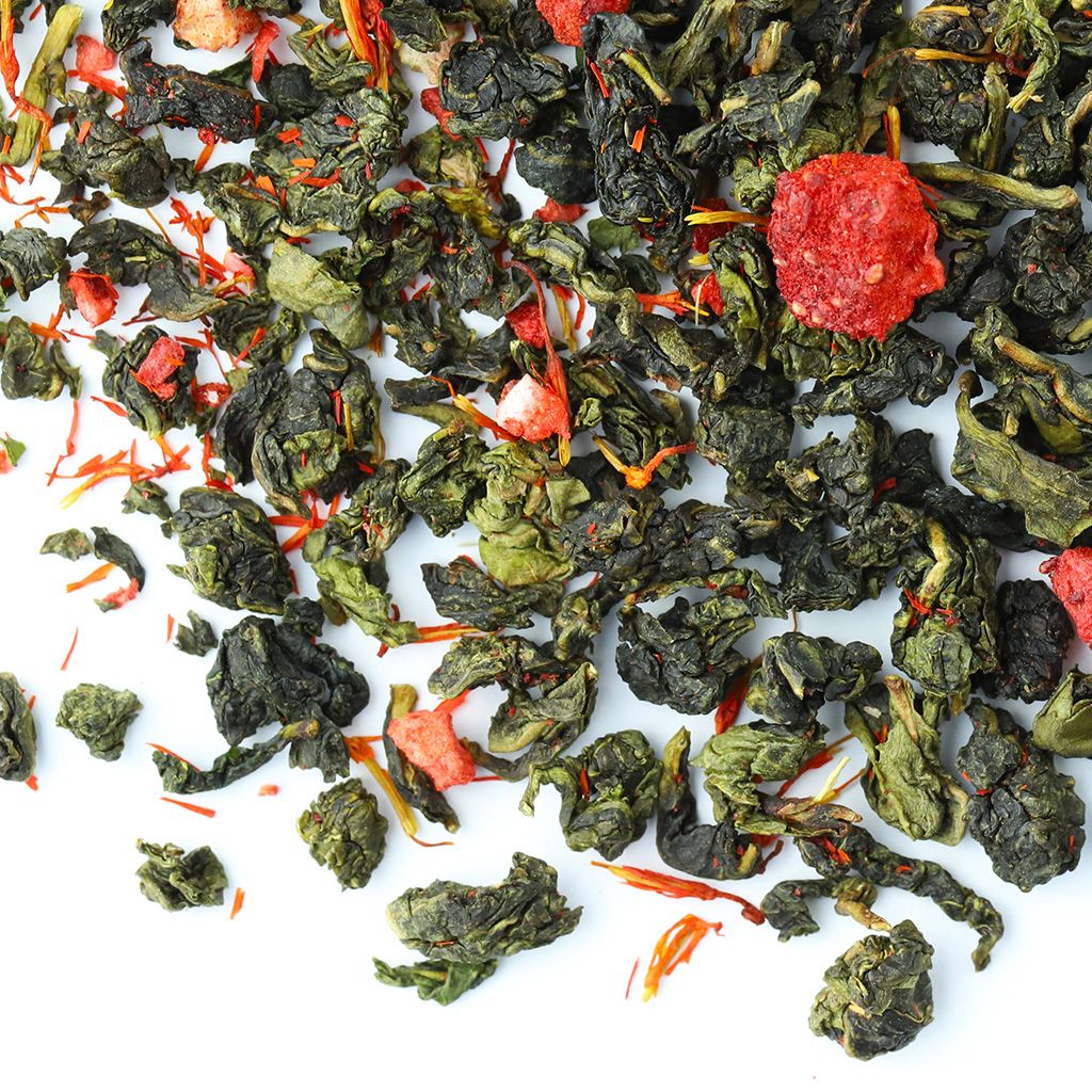 Популярный полу ферментированный чай, относящийся к категории Улунов в сочетании с кусочками клубники.