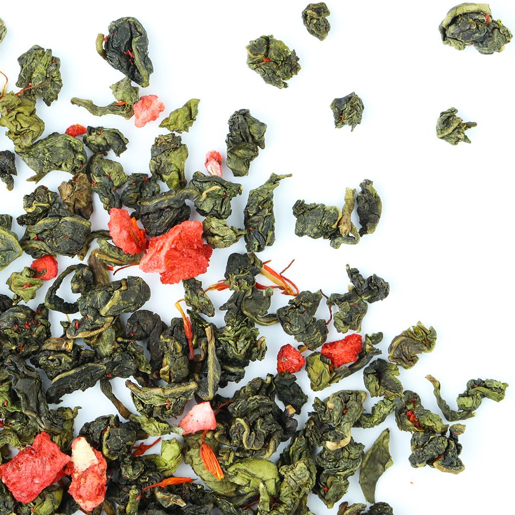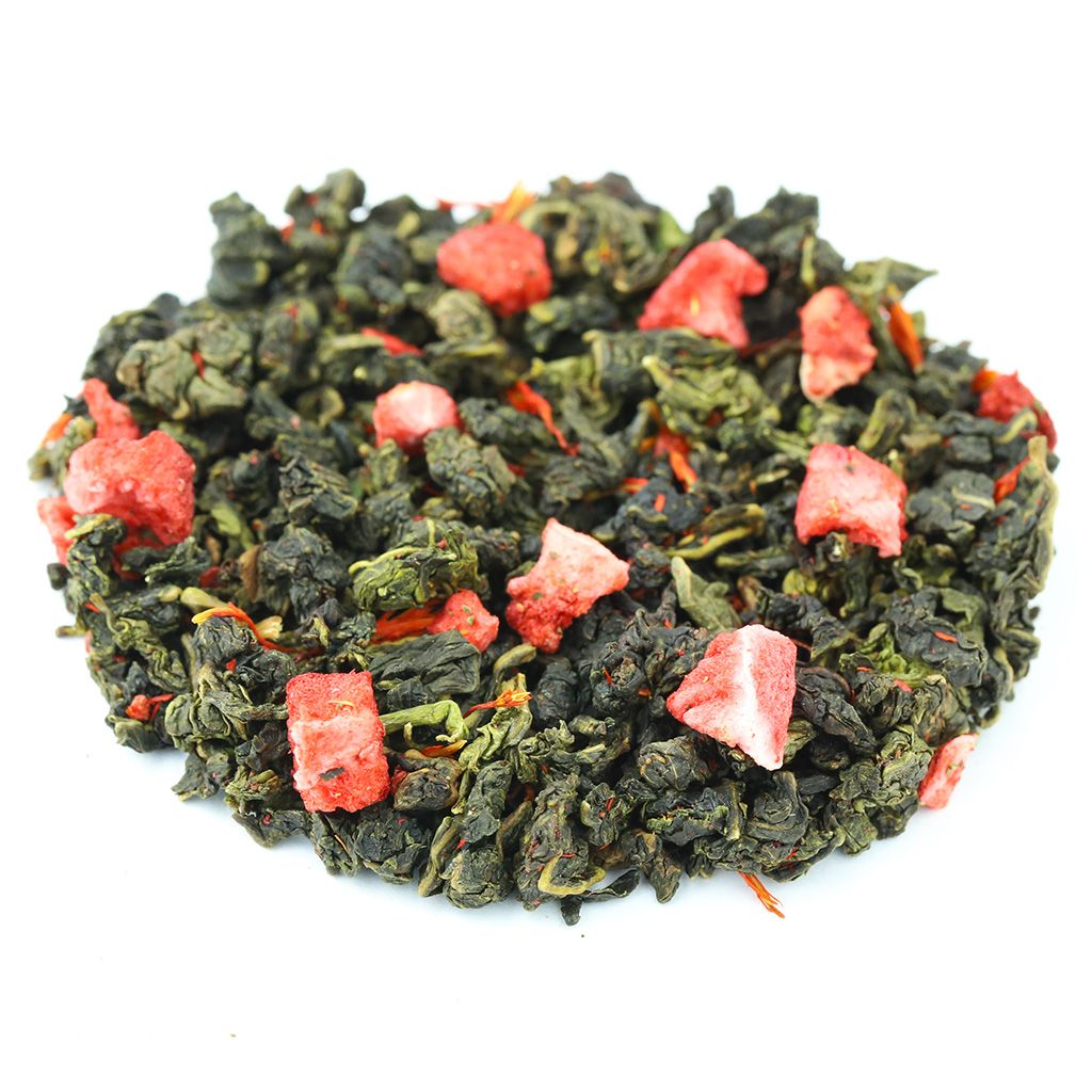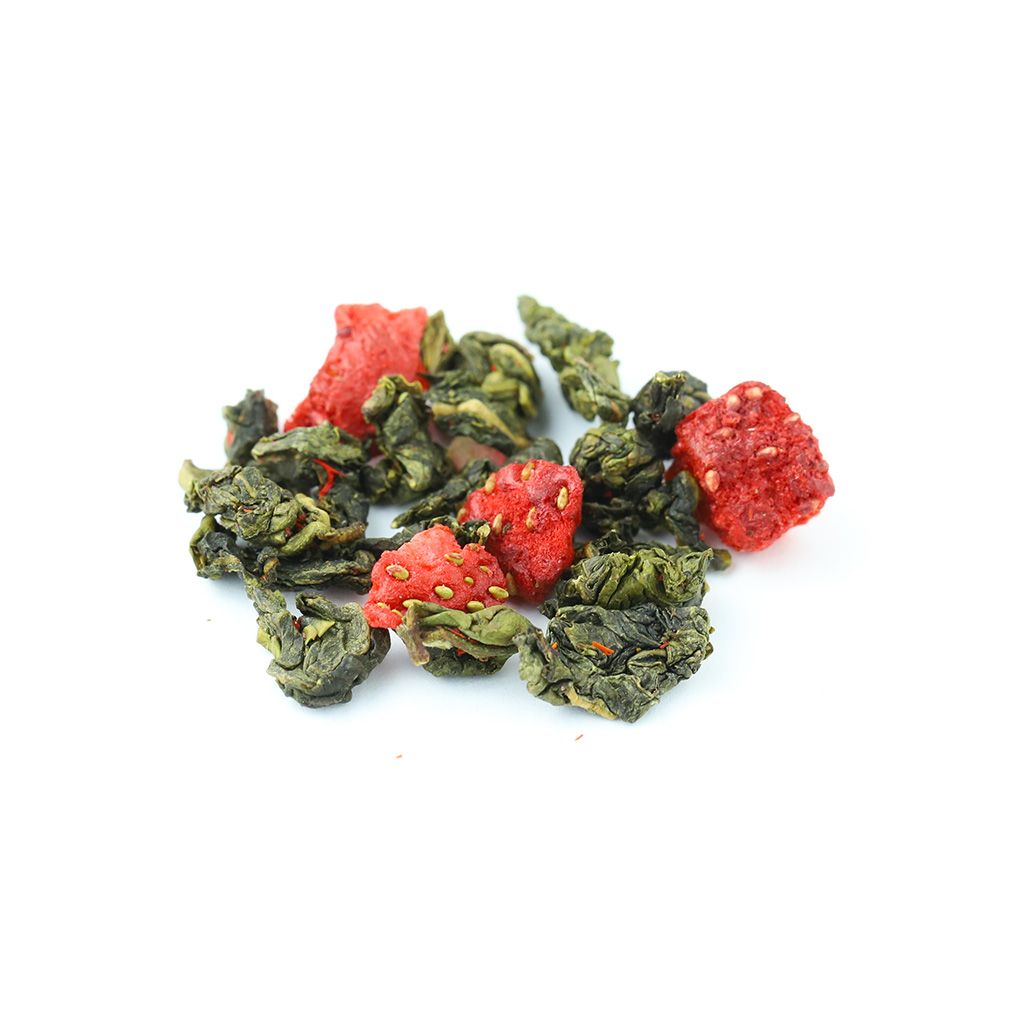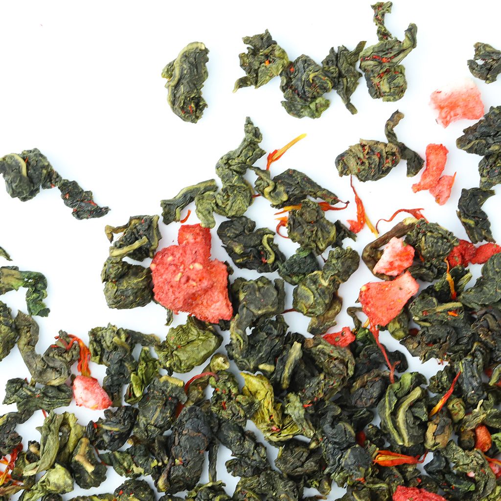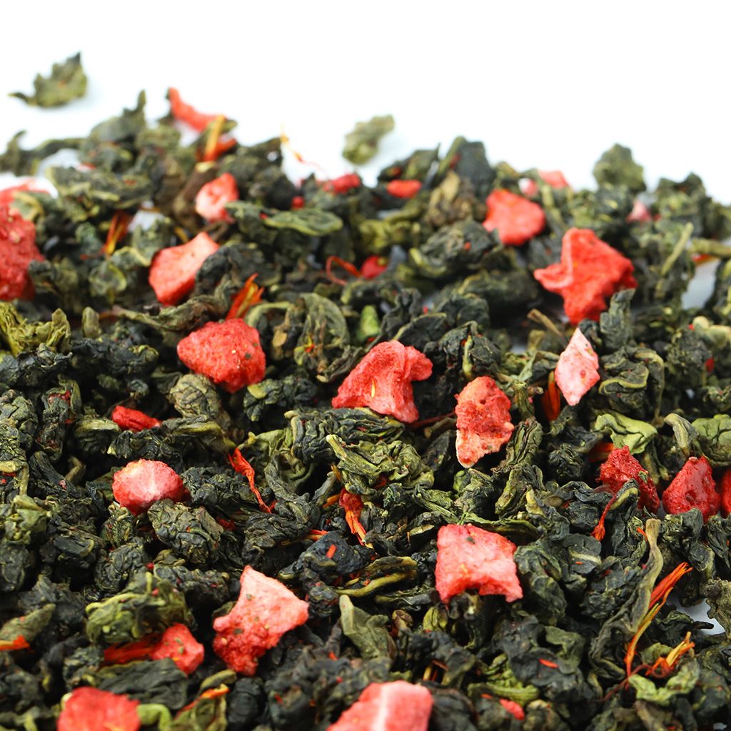 Популярный полу ферментированный чай, относящийся к категории Улунов в сочетании с кусочками клубники.