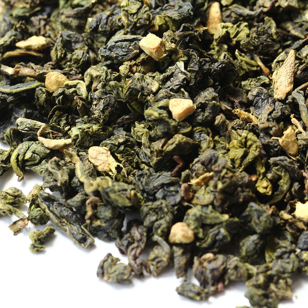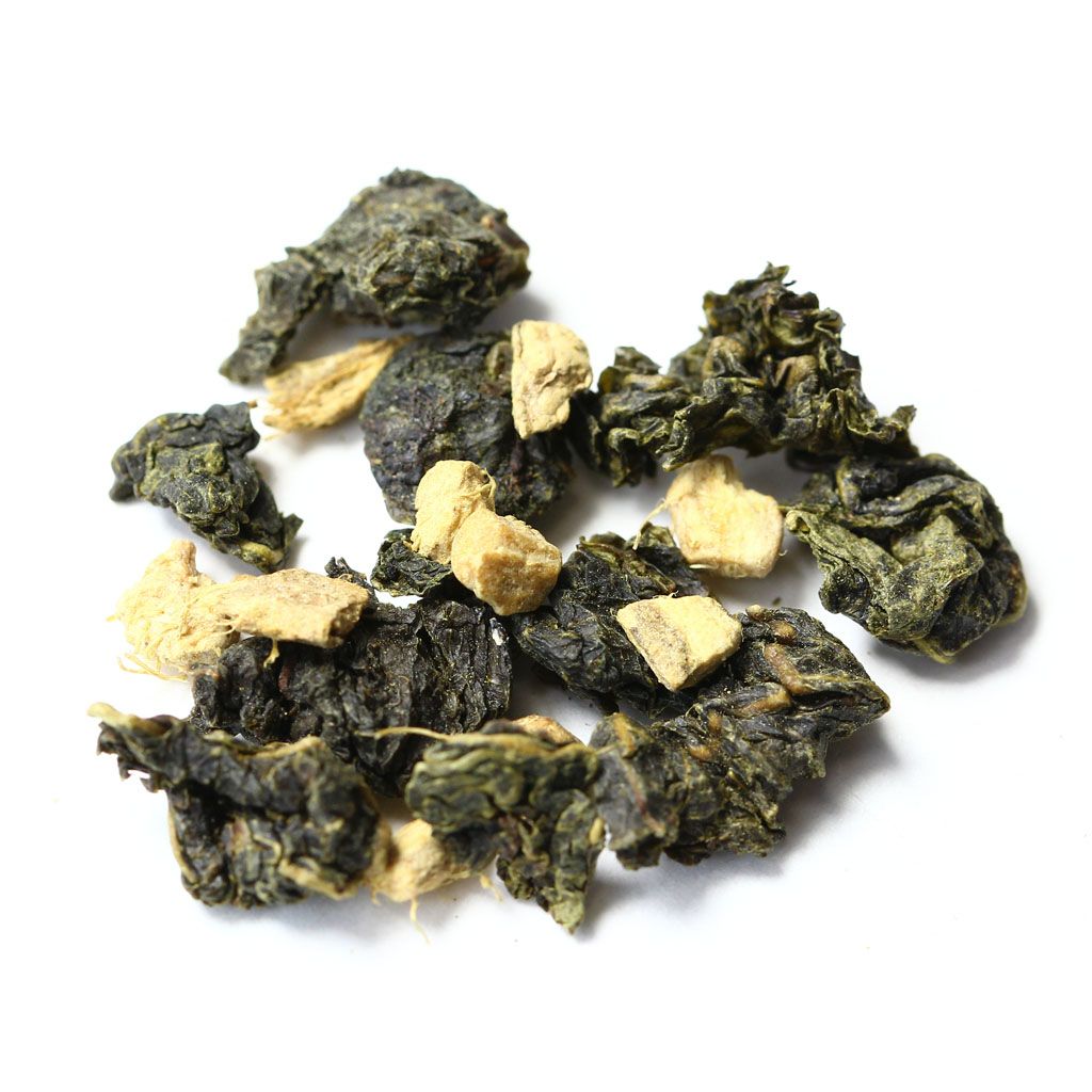 Незамысловатое сочетание китайского улуна и кусочков имбиря.