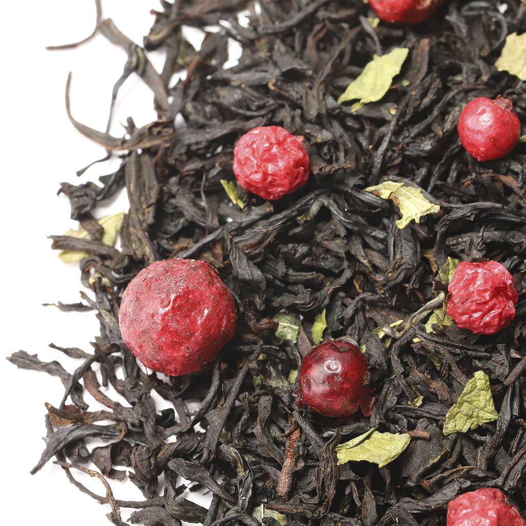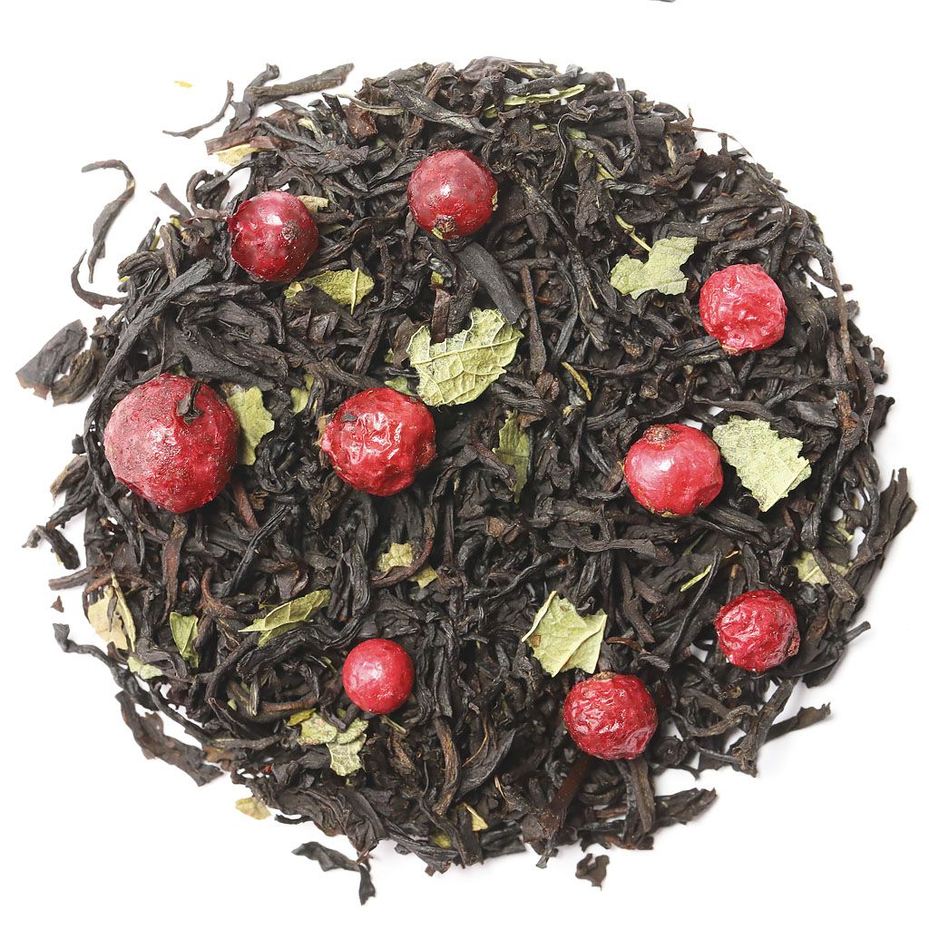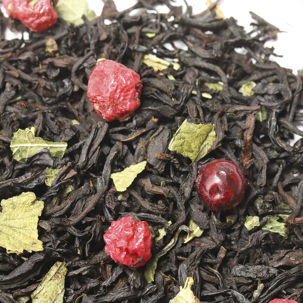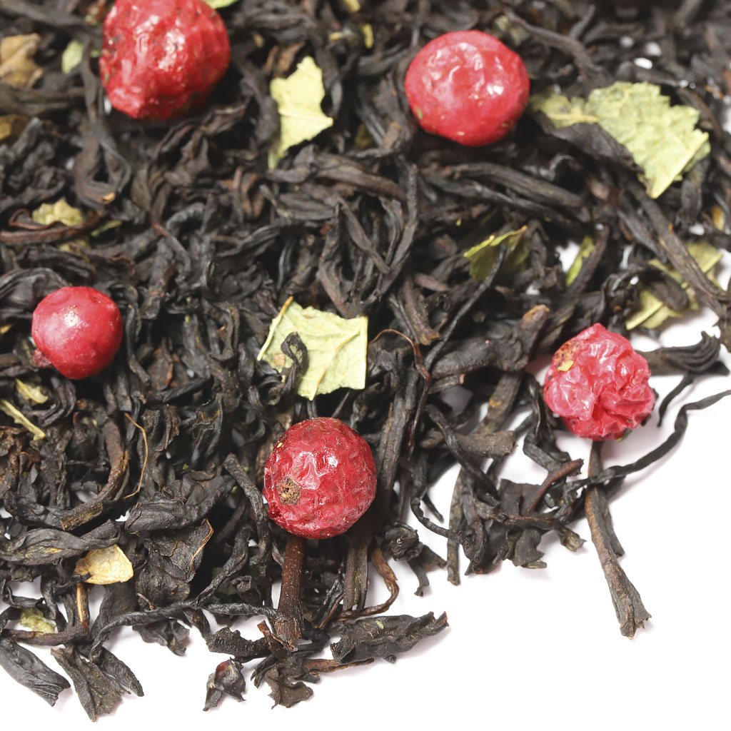 Чай черный цейлонский высокогорный, ягоды красной смородины, листья смородины, аромат красной смородины.
