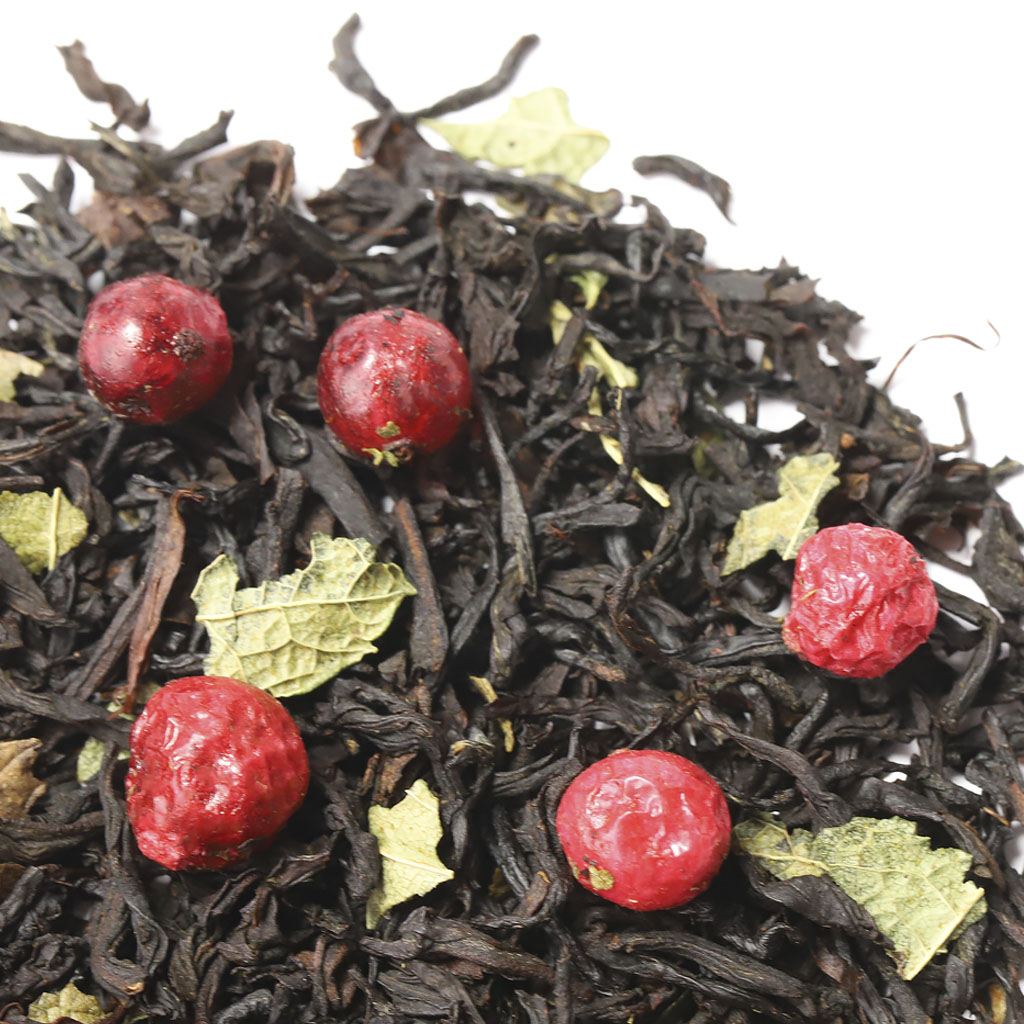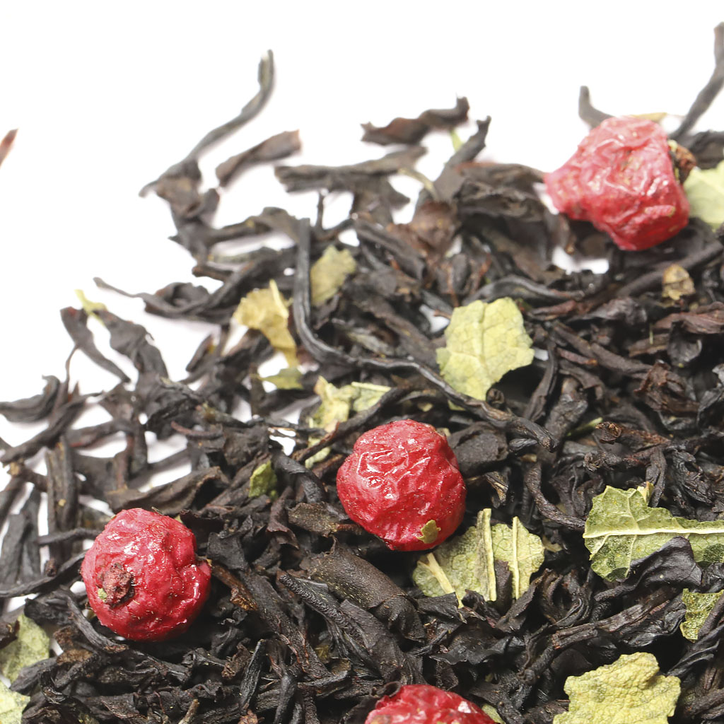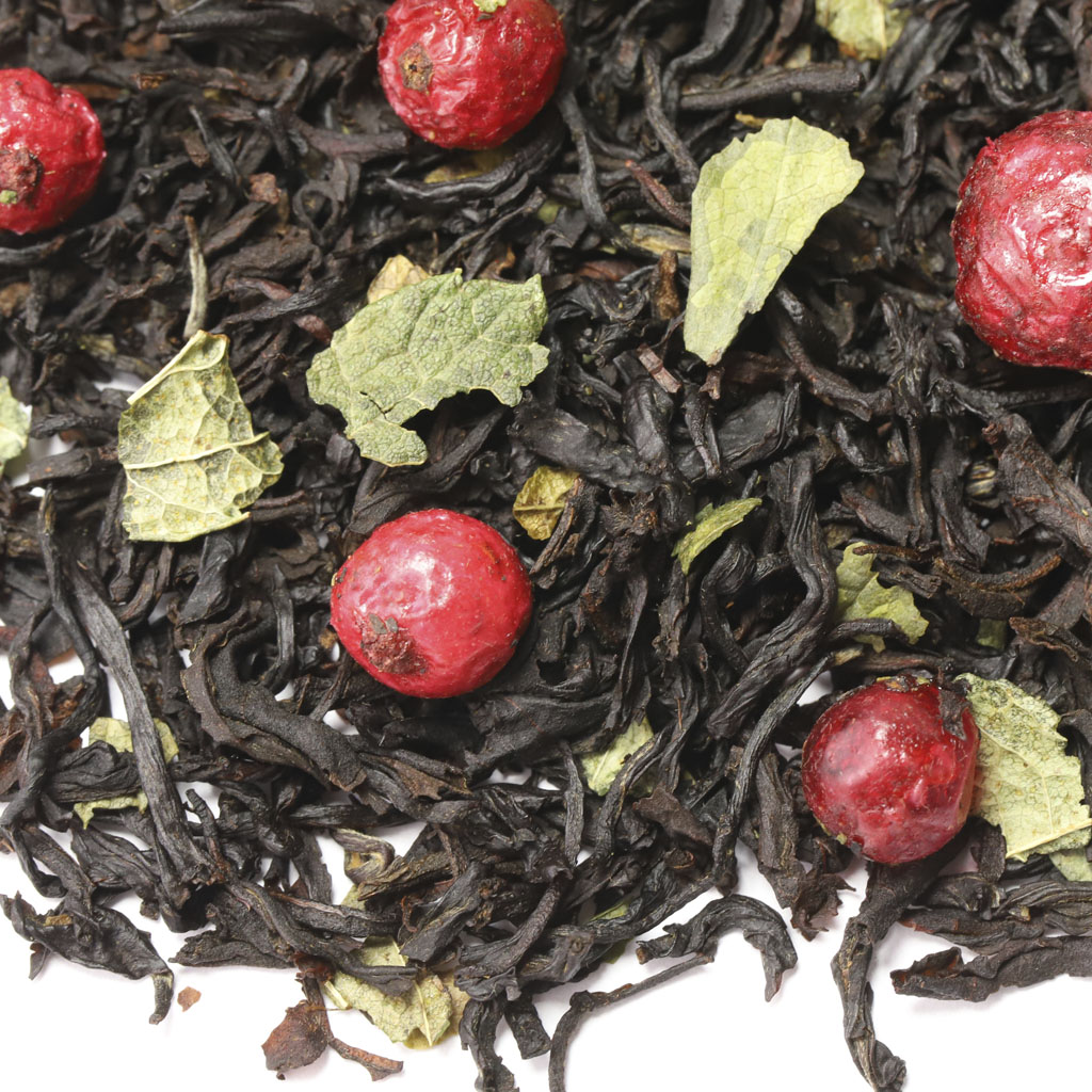 Неповторимый симбиоз ягод красной смородины с листьями кустарника на фоне терпкого вкуса черного цейлонского чая с высокогорных плантаций ощущается ново и ярко.