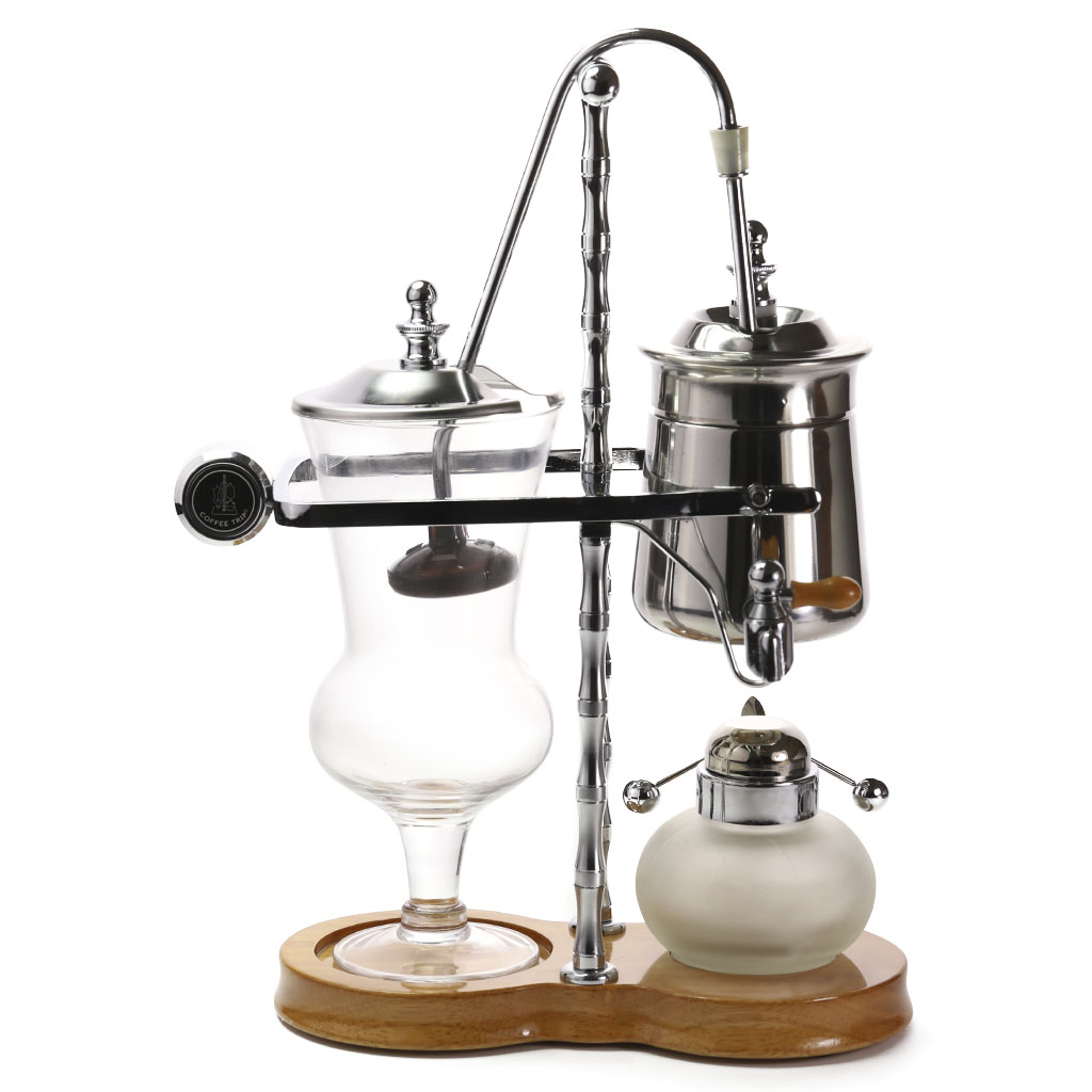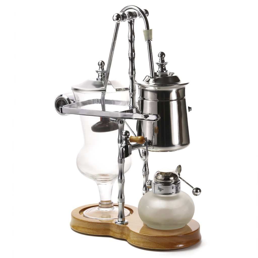 Венская королевская кофеварка в серебрянном цвете. Работает по принципу балансирующего сифона, изобретенного в 19 веке. В старину такая вещь встречалась только в домах представителей высшего общества.