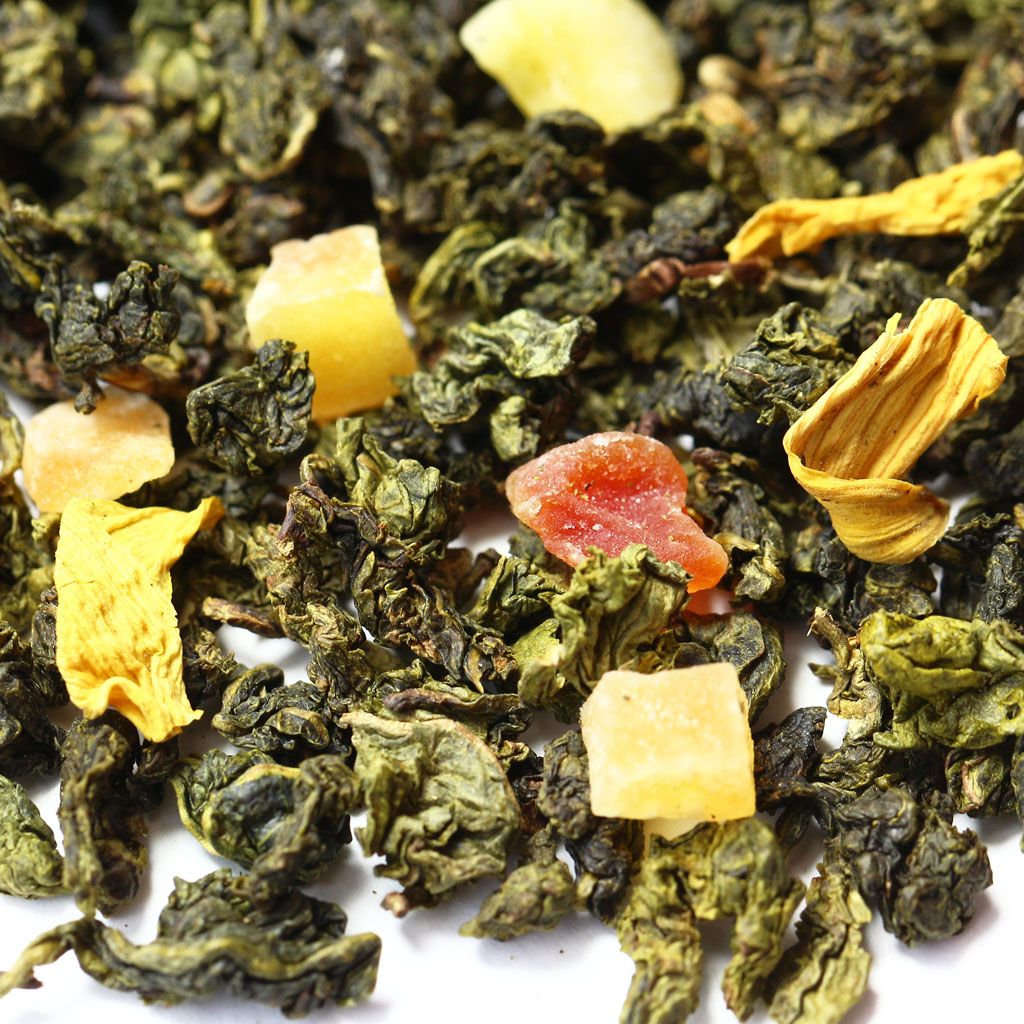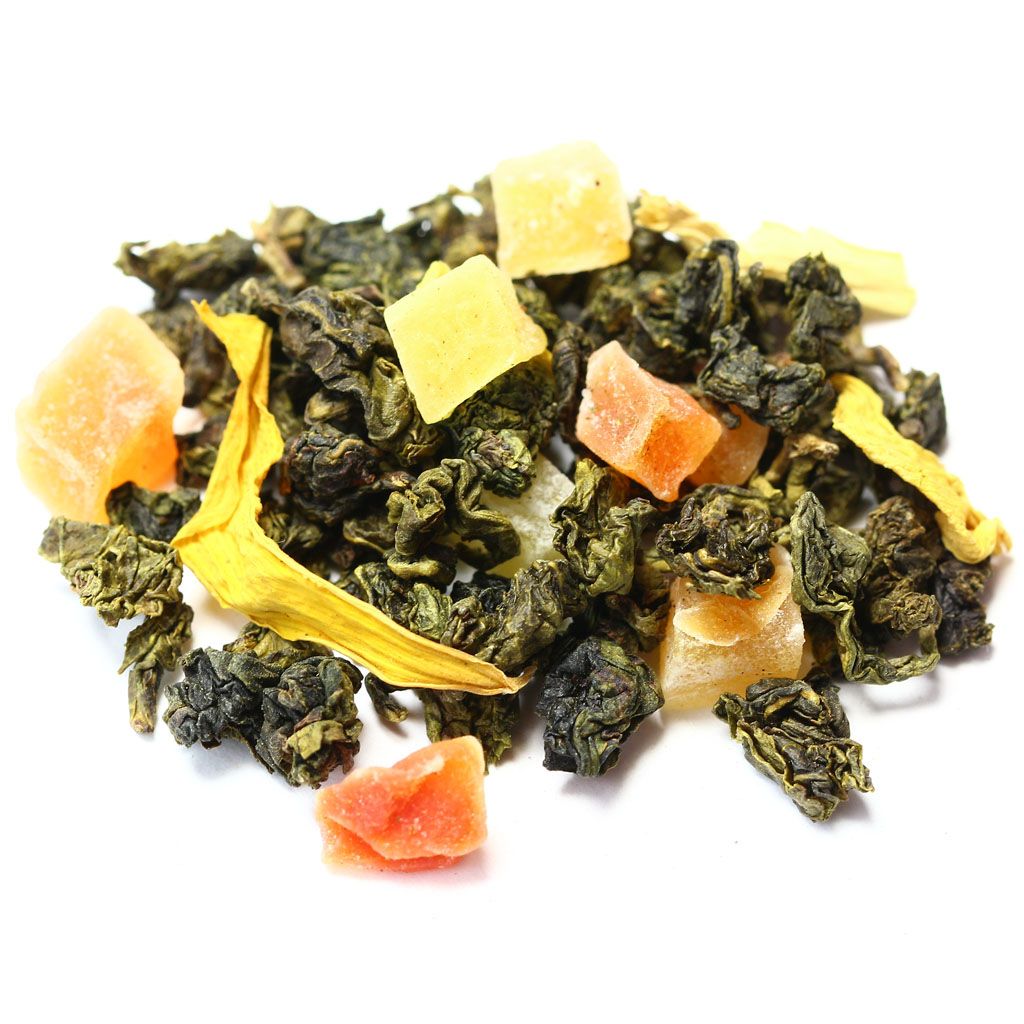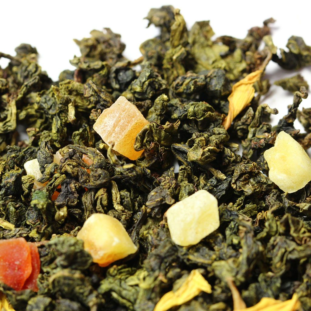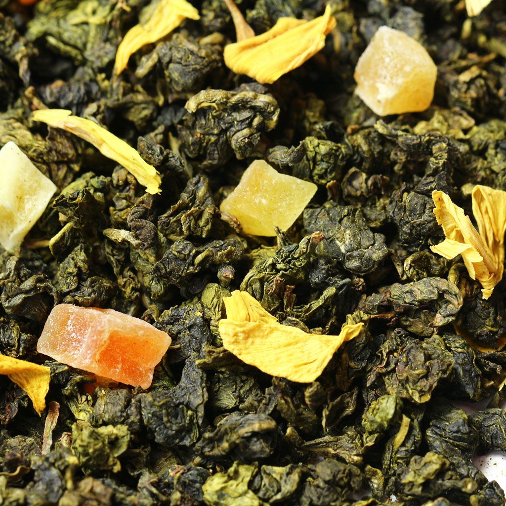 Чай зеленый китайский, кусочки папайи, лепестки подсолнечника, аромат дыни.