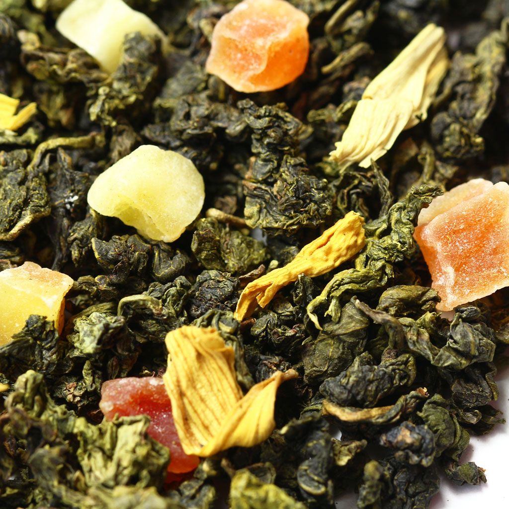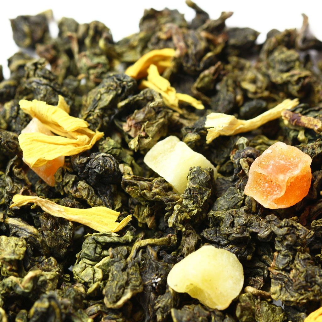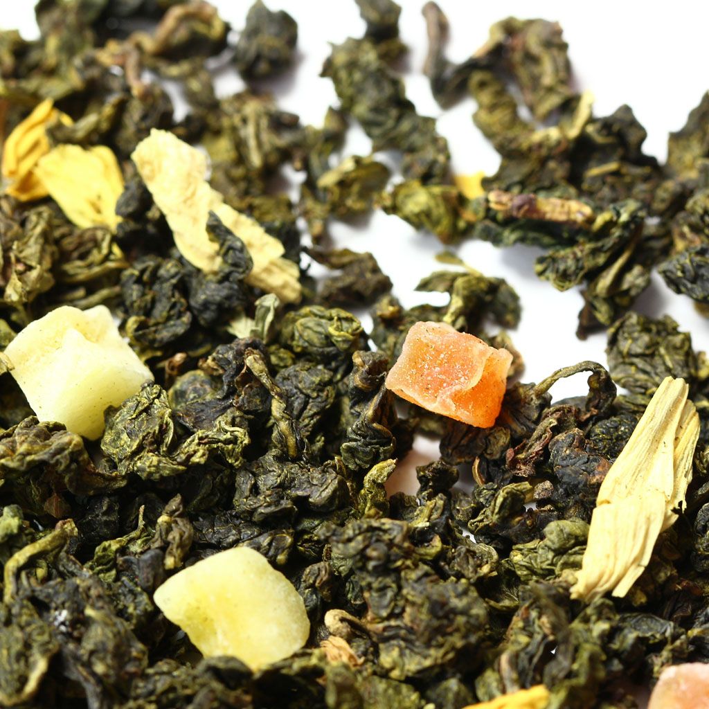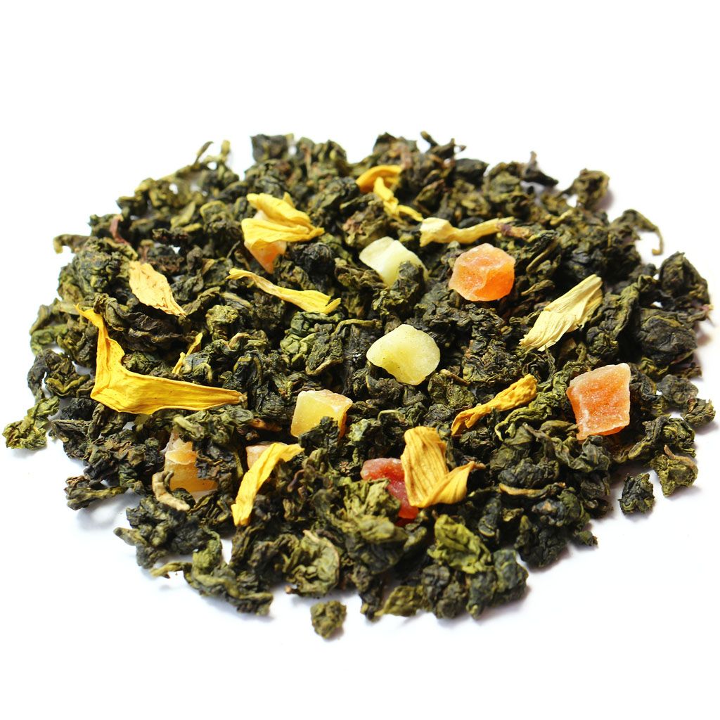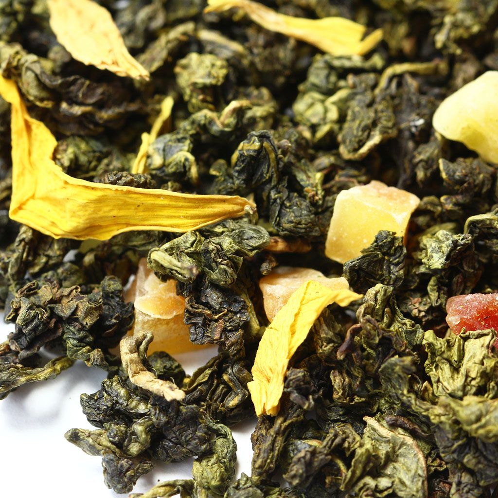 Чай зеленый китайский, кусочки папайи, лепестки подсолнечника, аромат дыни.