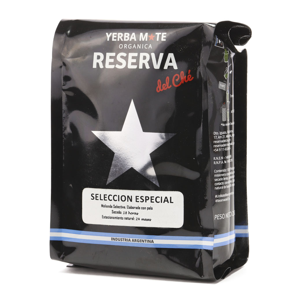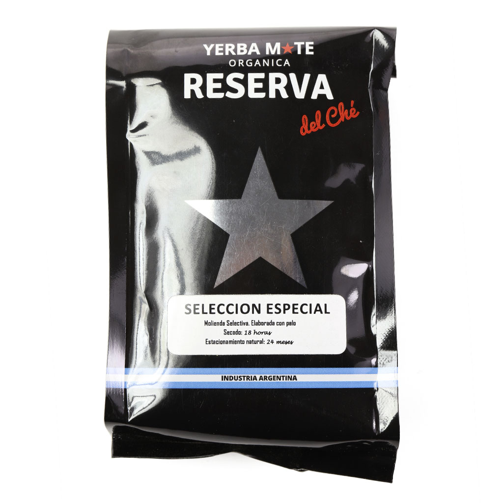 SELECCION ESPECIAL con palo - Селекционная Йерба Мате, со стебельками. Ограниченный сбор. Сушка производится в течение 18 часов, а выдержка длится 24 месяца. Уже несколько лет подряд большой популярностью пользуются так называемые домашние или фермерские йербы. Они производятся на небольших частных плантациях. В одном из самых живописных мест Аргентины расположилась небольшая компания ReservaDelChe. Она выпускает высококачественный бренд мате. Фермерские угодья располагаются недалеко от знаменитого водопада Игуасу, что в национальном парке Катаратас дель Игуасу в провинции Мисионес. Такой особенный мате с изумительным вкусом и ароматом получается благодаря железу и минеральным веществам, которыми чрезвычайно богаты местные земли. А в сочетании с уникальным тропическим климатом и получается такой восхитительный напиток. ReservaSeleccionEspecial имеет стойкий, обволакивающий аромат трав, а также нотки сухофруктов и чернослива. Густой, тягучий, сладковатый вкус с оттенком солода, кураги и легкой горчинкой, который сменяет длительное мягкое послевкусие. Настой данного мате обладает прозрачным, светло-зеленым оттенком.