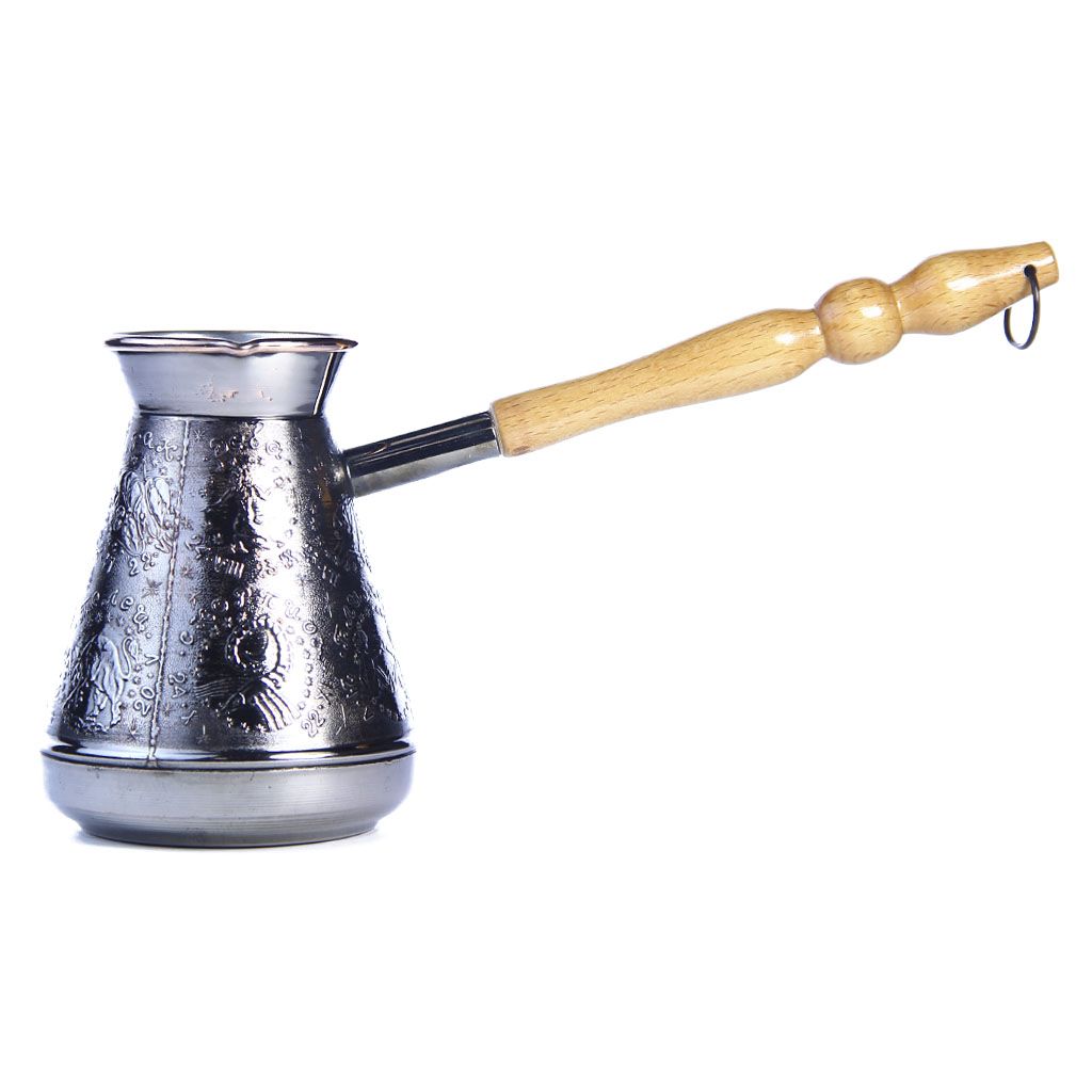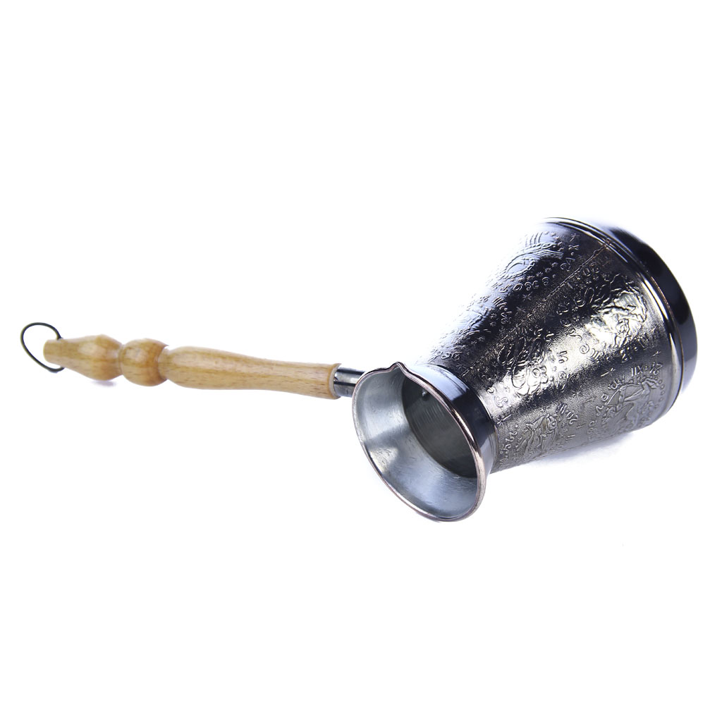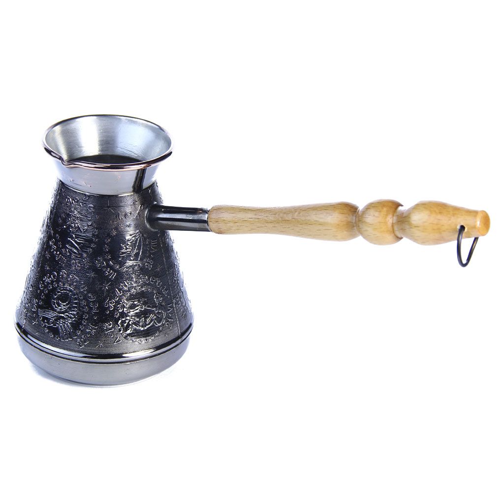 Медная турка конической формы, с длинной деревянной ручкой, объемом 600 мл.