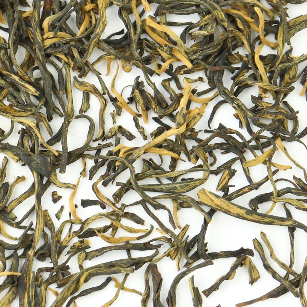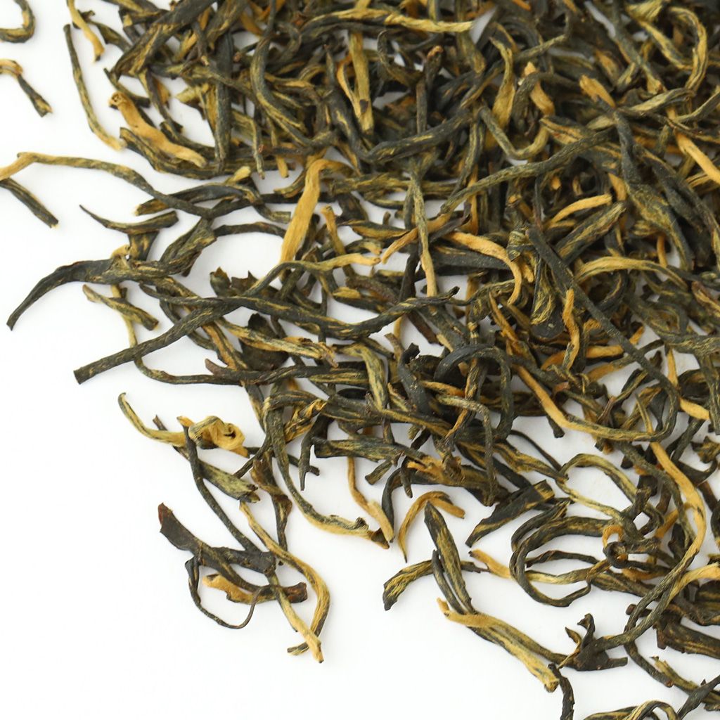 Золотой шелк или Хуан Цзинь Су отличается высокой степенью ферментированности и славится своим запоминающимся ароматом. Свое название этот напиток полностью оправдывает: он струится, словно китайский шелк и переливается золотыми искорками, доставляя незабываемое удовольствие от чаепития. Тонкие жгутики темно-золотистого цвета с травянисто-цветочным ароматом обладает легкой кислинкой сухофруктов. Его мягкий, но в то же время терпкий вкус обволакивает и покоряет с первого глотка. В нем сочетаются фруктовые, ореховые и пряные нотки. А древесный аромат только усилит эстетическое наслаждение от чаепития. Готовый настой получается не густым, янтарного или красно-коричневого цвета.